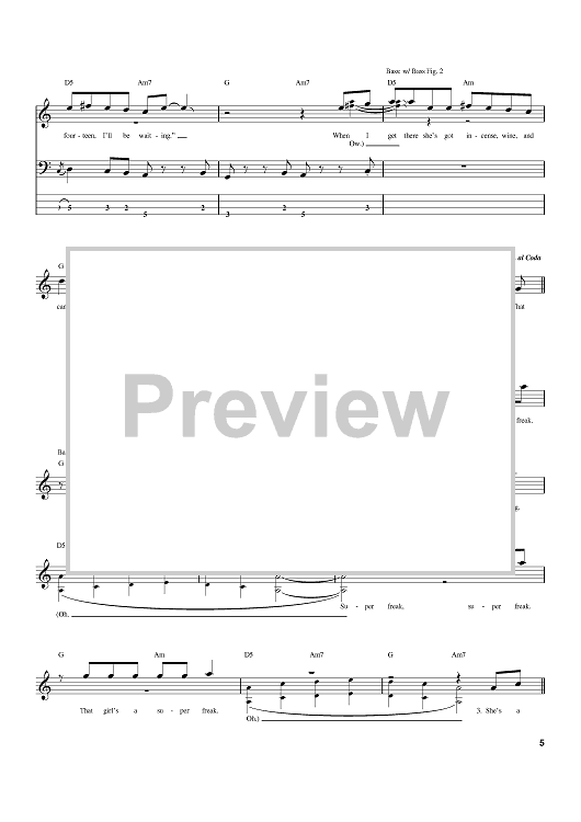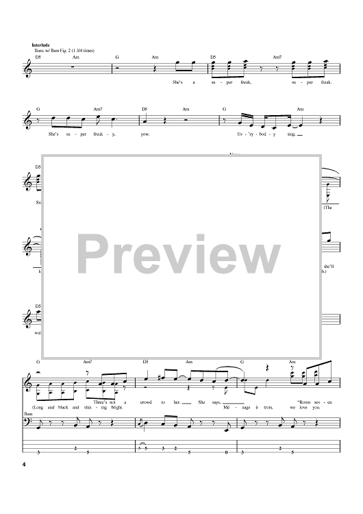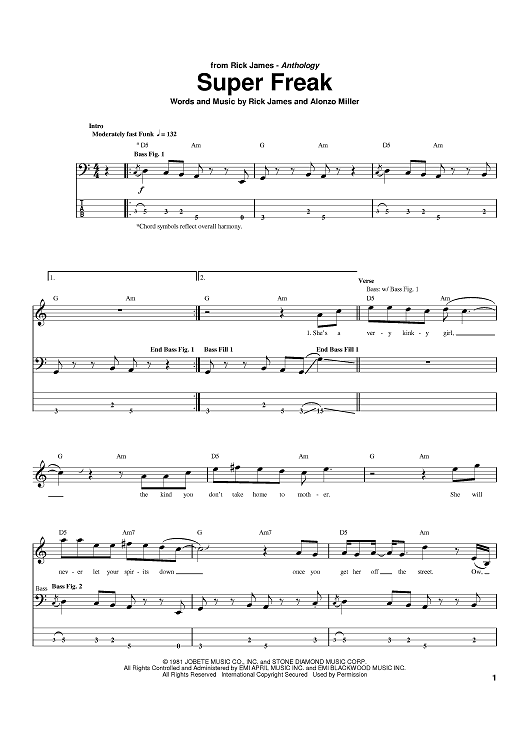 Digital Sheet Music for Super Freak by Rick James, Alonzo Miller scored for Bass Tab; id:390125