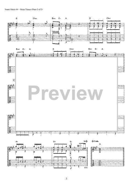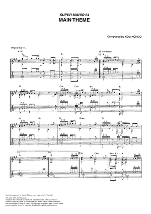 Digital Sheet Music for Super Mario 64: Main Theme by Koji Kondo, Satoshi Aikawa scored for Guitar Tab; id:444075