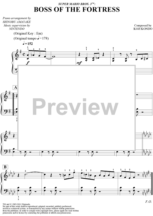 "Super Mario Bros. 3™: Boss of the Fortress" Sheet Music by Koji Kondo