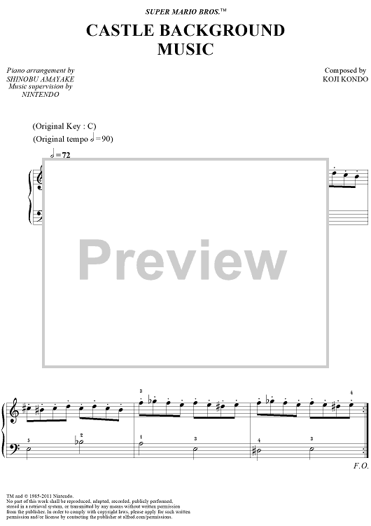 Digital Sheet Music for Super Mario Bros.™: Castle Background Music by Koji Kondo, Shinobu Amayake scored for Easy Piano; id:447152