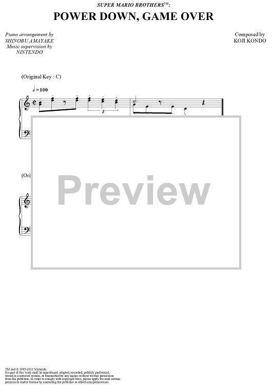 Digital Sheet Music for Super Mario Brothers™: Power Down, Game Over by Koji Kondo, Shinobu Amayake scored for Piano Solo; id:445106