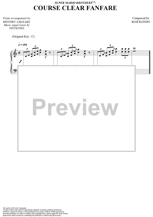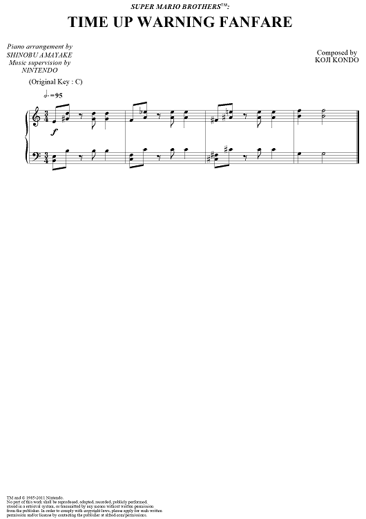 Digital Sheet Music for Super Mario Brothers™: Time Up Warning Fanfare/World Clear Fanfare/Course Clear Fanfare by Koji Kondo, Shinobu Amayake scored for Piano Solo; id:445099