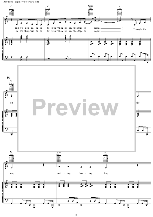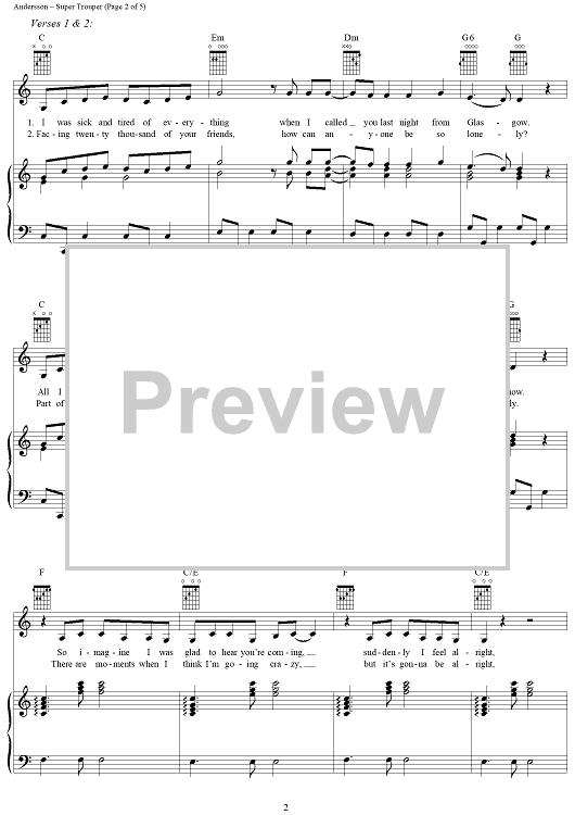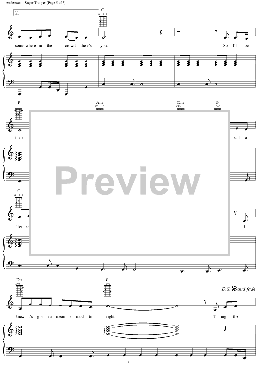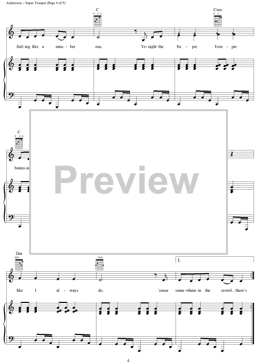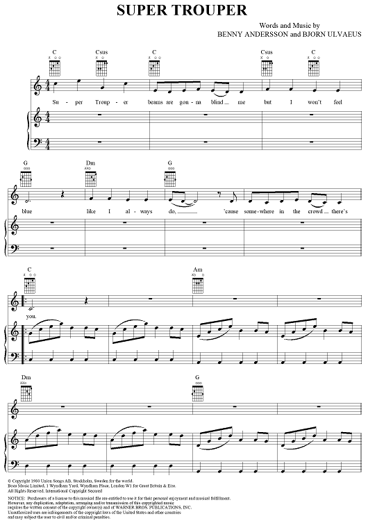 Digital Sheet Music for Super Trouper by ABBA, Benny Andersson, Bjorn Ulvaeus scored for Piano/Vocal/Chords; id:292372
