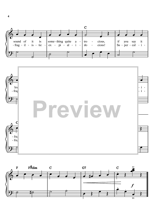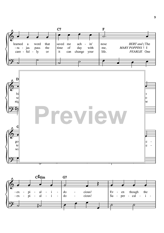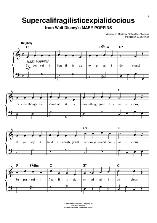 Digital Sheet Music for Supercalifragilisticexpialidocious by Richard M. Sherman, Robert B. Sherman scored for Easy Piano; id:368403
