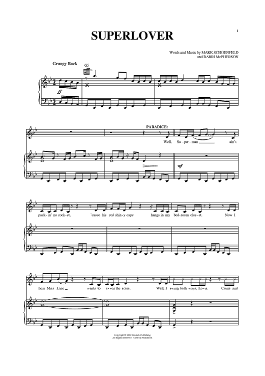 Digital Sheet Music for Superlover by Barri McPherson, Mark Schoenfeld scored for Piano/Vocal/Chords; id:390700
