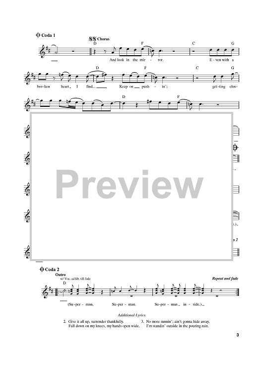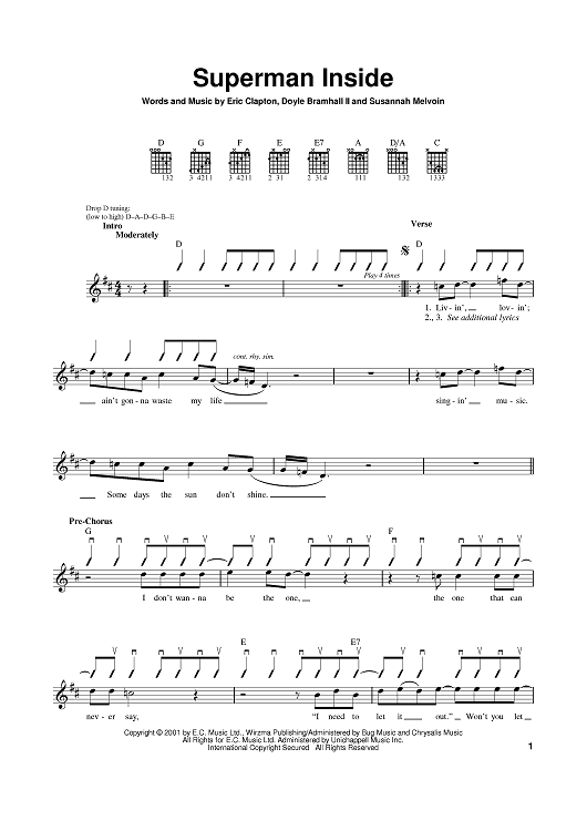 Digital Sheet Music for Superman Inside by Eric Clapton, Susannah Melvoin, Doyle Bramhall II scored for Lead Sheet with Guitar Grids; id:371779