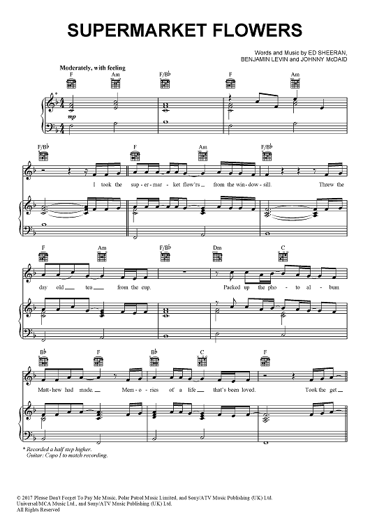 Digital Sheet Music for Supermarket Flowers by Benjamin Levin, Ed Sheeran, John McDaid scored for Piano/Vocal/Chords; id:464237