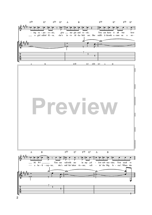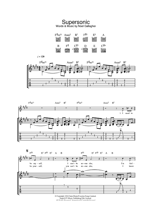 Digital Sheet Music for Supersonic by Noel Gallagher, Oasis scored for Guitar Tab; id:385677