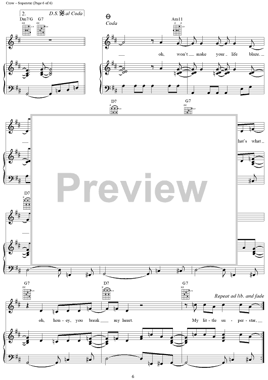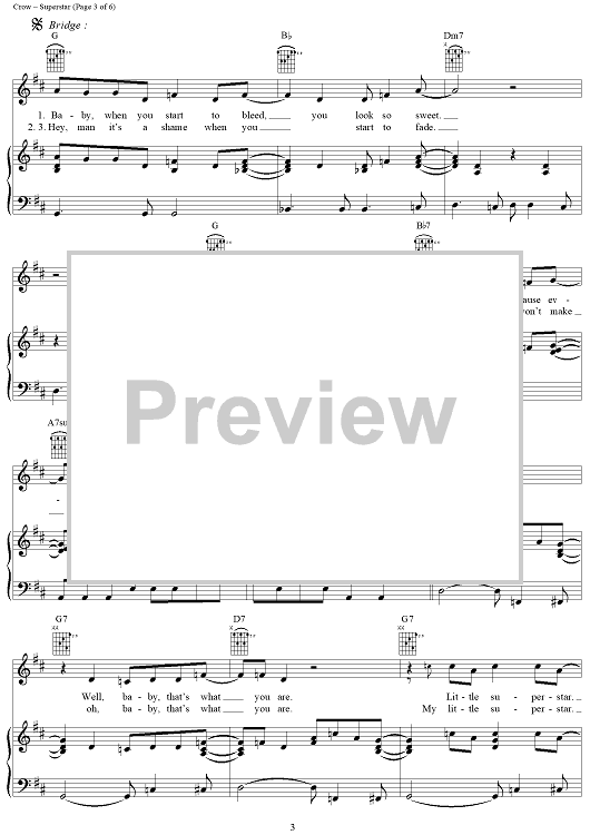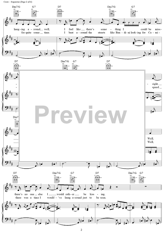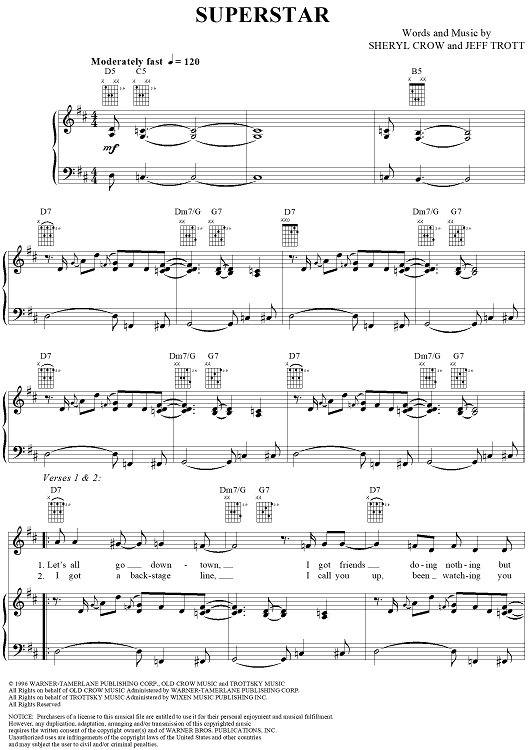 Digital Sheet Music for Superstar by Sheryl Crow, Jeff Trott scored for Piano/Vocal/Chords; id:241648