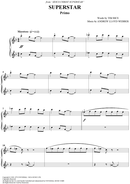 Digital Sheet Music for Superstar by Andrew Lloyd Webber, Tim Rice scored for 1 Piano, 4 Hands; id:395264