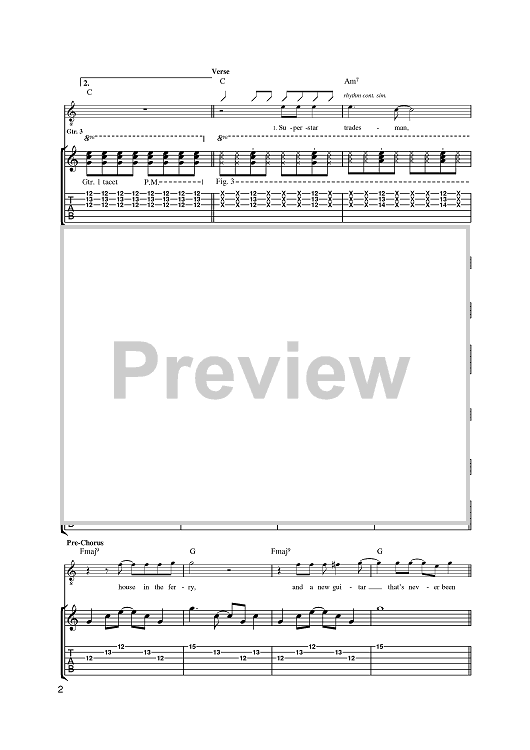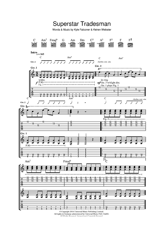 Digital Sheet Music for Superstar Tradesman by Kyle Falconer, The View, Keiren Webster scored for Guitar Tab; id:396769