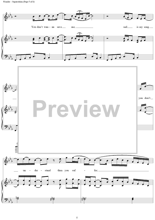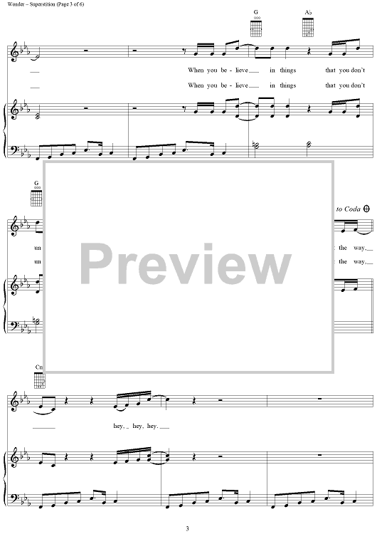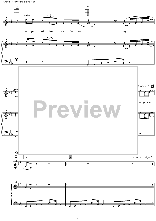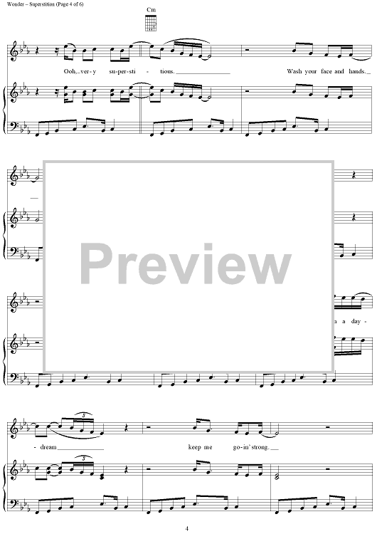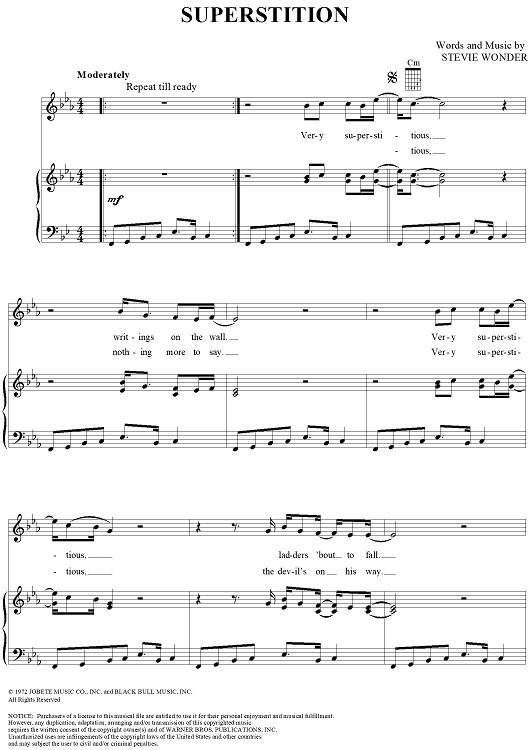 Digital Sheet Music for Superstition by Stevie Wonder scored for Piano/Vocal/Chords; id:263249