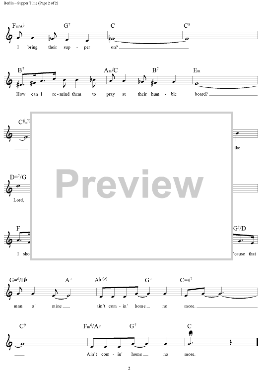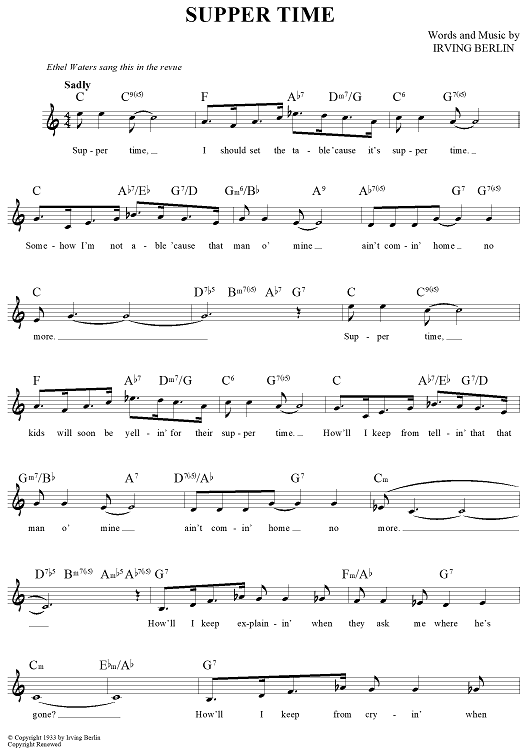 Digital Sheet Music for Supper Time by Irving Berlin scored for Lead Sheet; id:441752