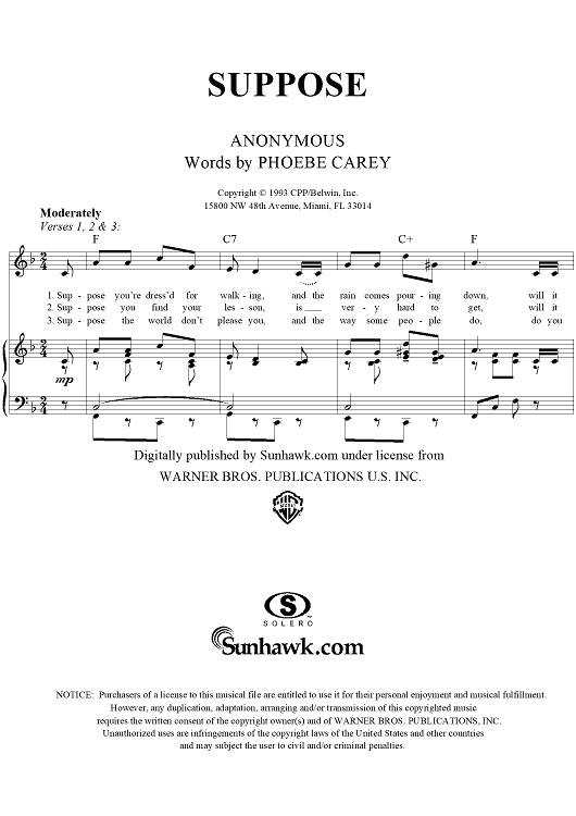 Digital Sheet Music for Suppose by Unknown Writer, Phoebe Carey scored for Piano/Vocal/Chords; id:277341