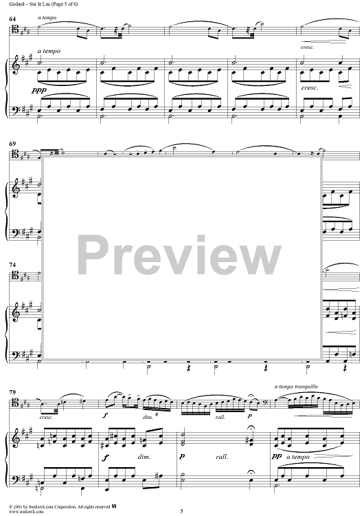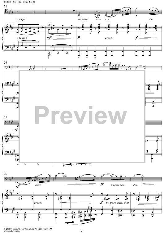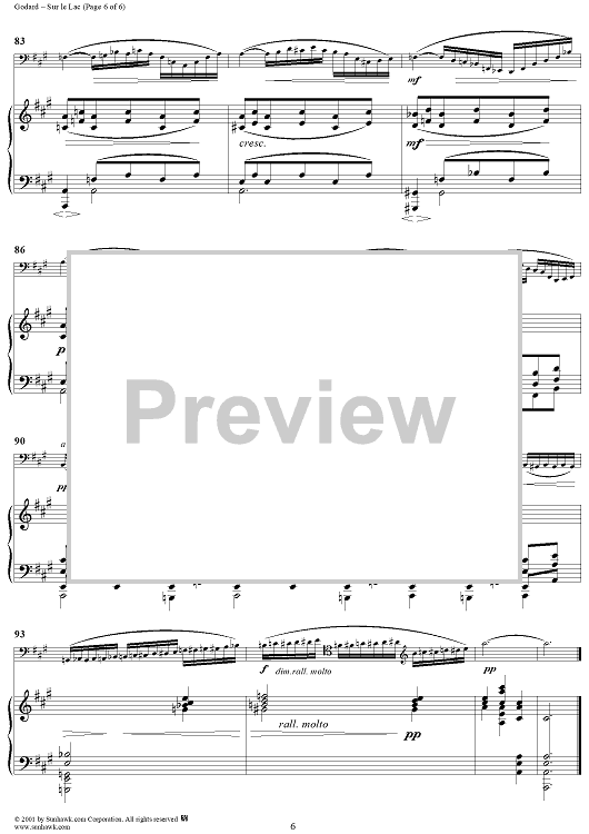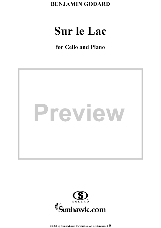 Digital Sheet Music for Sur le Lac, Op. 36 - Piano Score by Benjamin Godard scored for Cello/Piano; id:269014