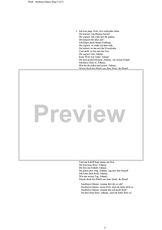Digital Sheet Music for Surabaya-Johnny by Bertold Brecht, Kurt Weill scored for Piano/Vocal; id:263661