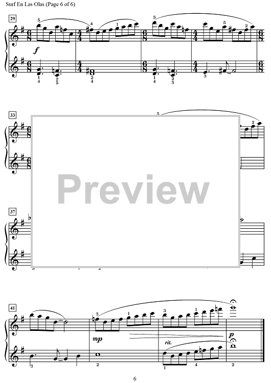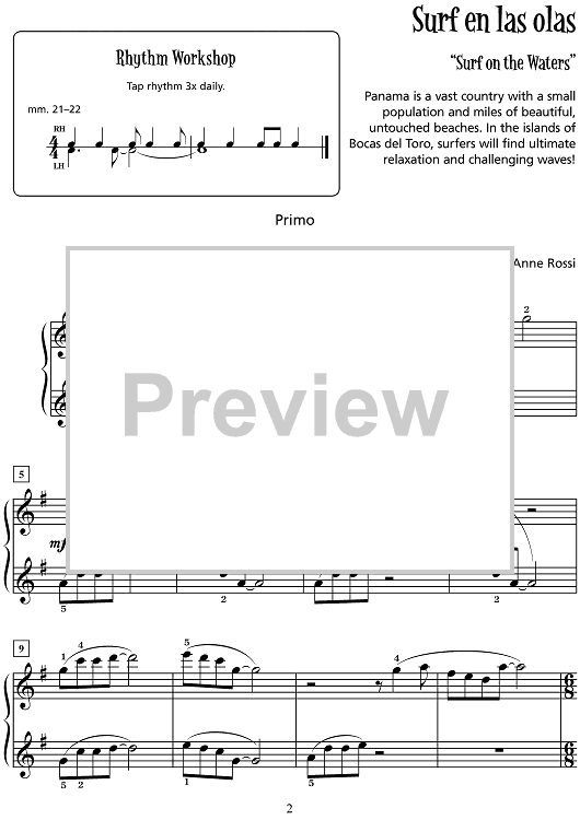 Digital Sheet Music for Surf en las olas by Wynn-Anne Rossi scored for 1 Piano, 4 Hands; id:469527