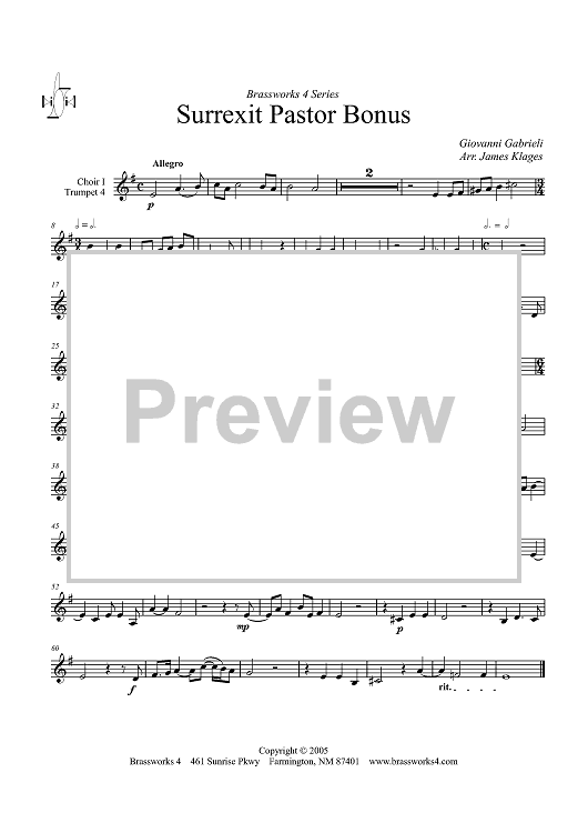 Digital Sheet Music for Surrexit Pastor Bonus - Choir 1, Trumpet 4 by Giovanni Gabrieli, James Klages scored for Trumpet Choir; id:317923