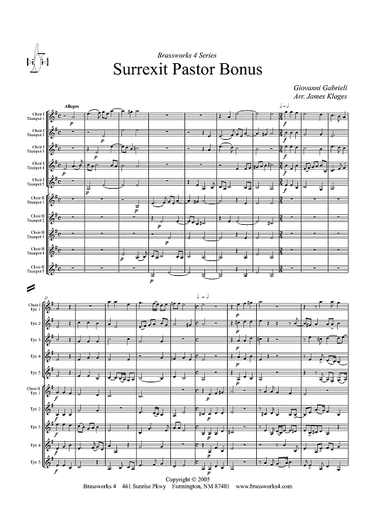Digital Sheet Music for Surrexit Pastor Bonus - Score by Giovanni Gabrieli, James Klages scored for Trumpet Choir; id:317919