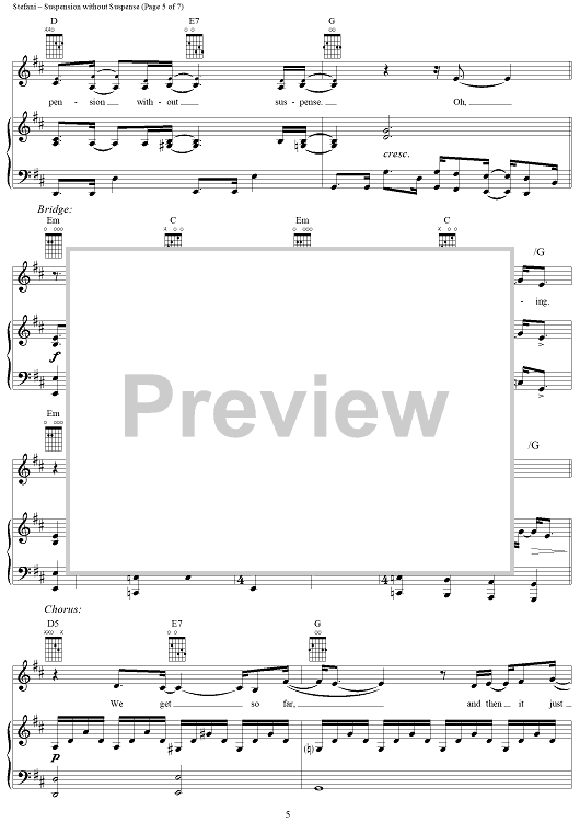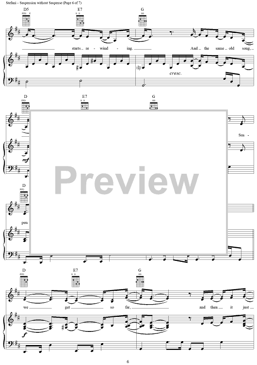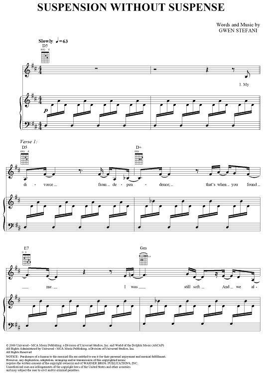 Digital Sheet Music for Suspension Without Suspense by No Doubt, Gwen Stefani scored for Piano/Vocal/Chords; id:284135