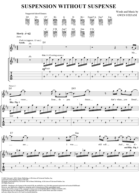 "Suspension Without Suspense" Sheet Music by No Doubt