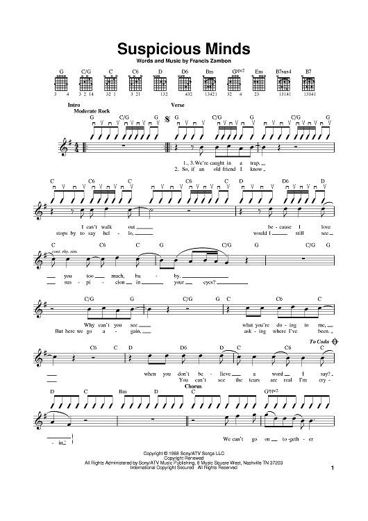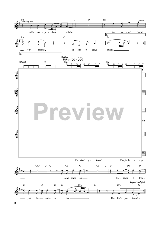 "Suspicious Minds" Sheet Music by Elvis Presley