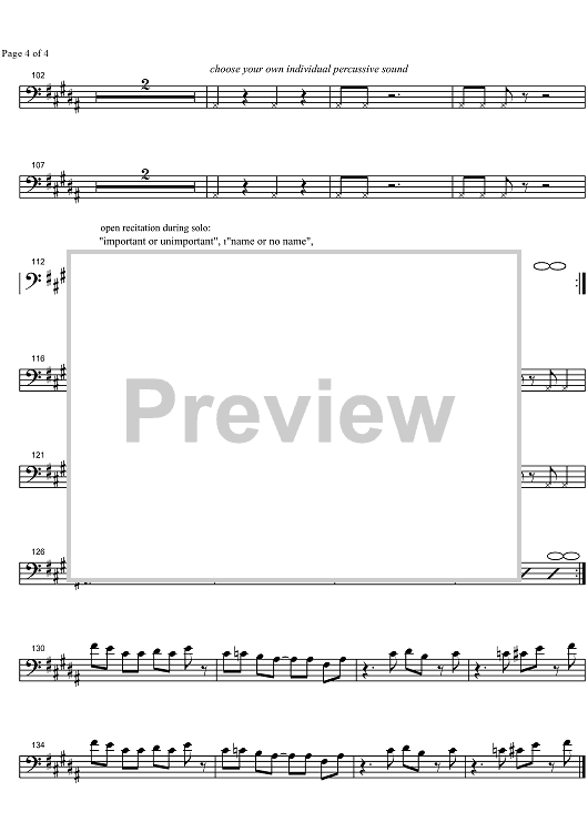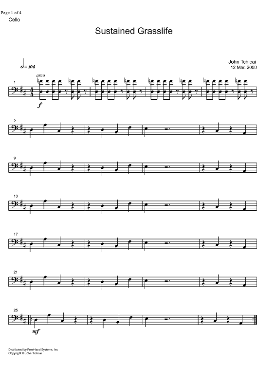 "Sustained Grasslife - Cello" Sheet Music by John Tchicai