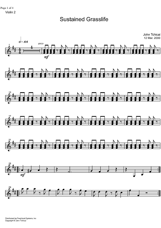 "Sustained Grasslife - Violin 2" Sheet Music by John Tchicai