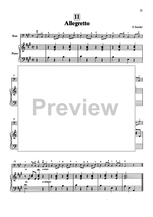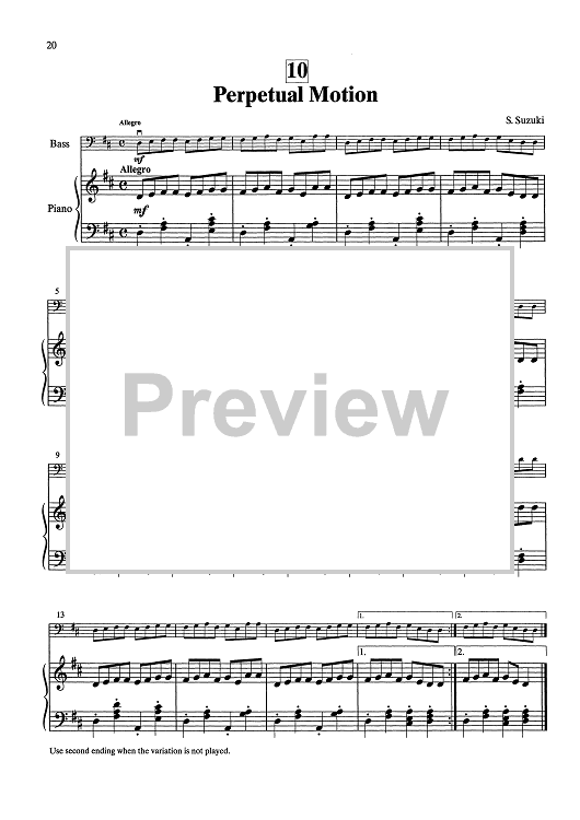 This Suzuki piano accompaniment book aids in Suzuki bass lessons.