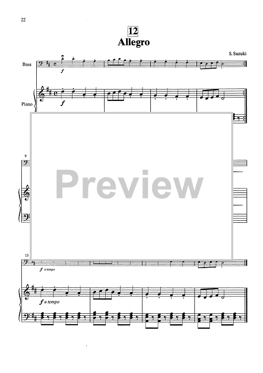 "Suzuki Bass School, Volume 1 - Piano Accompaniment" Sheet Music by Shinichi Suzuki