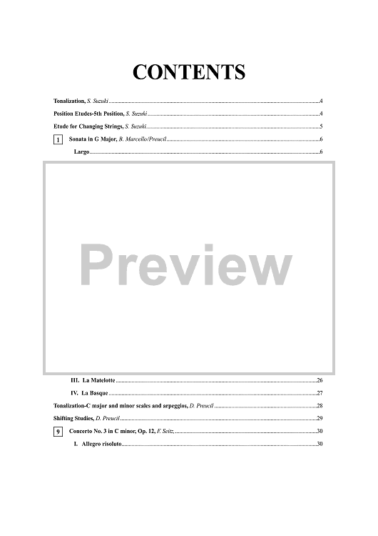 * Fingerboard position * CD featuring recordings by William Preucil accompanied by Doris Preucil.