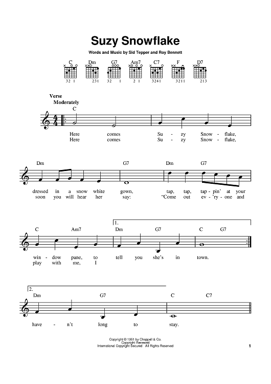 Digital Sheet Music for Suzy Snowflake by Sid Tepper, Roy C. Bennett scored for Easy Guitar; id:384685