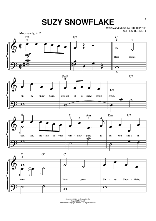 Digital Sheet Music for Suzy Snowflake by Sid Tepper, Roy C. Bennett scored for Big Note Piano; id:397926