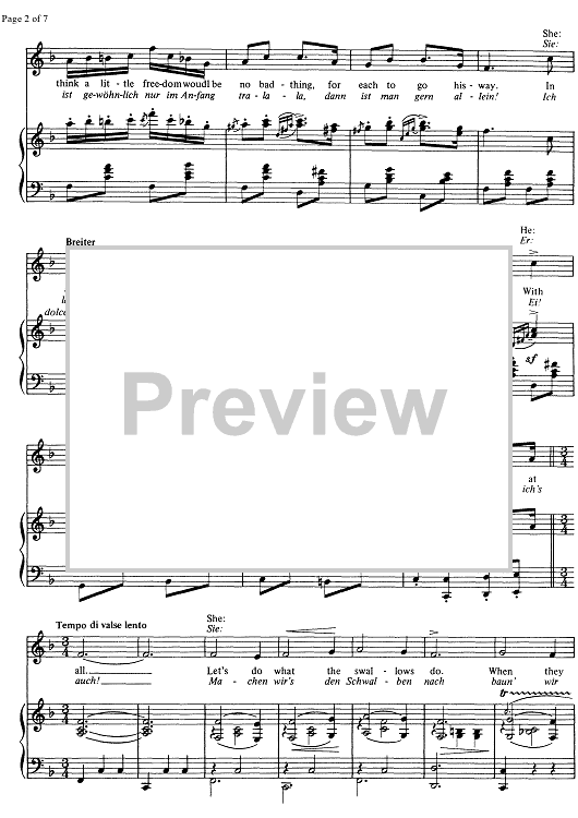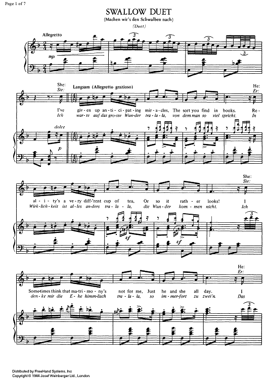 Digital Sheet Music for Swallow Duet by Emmerich Kalman scored for Soprano/Tenor/Piano; id:332905