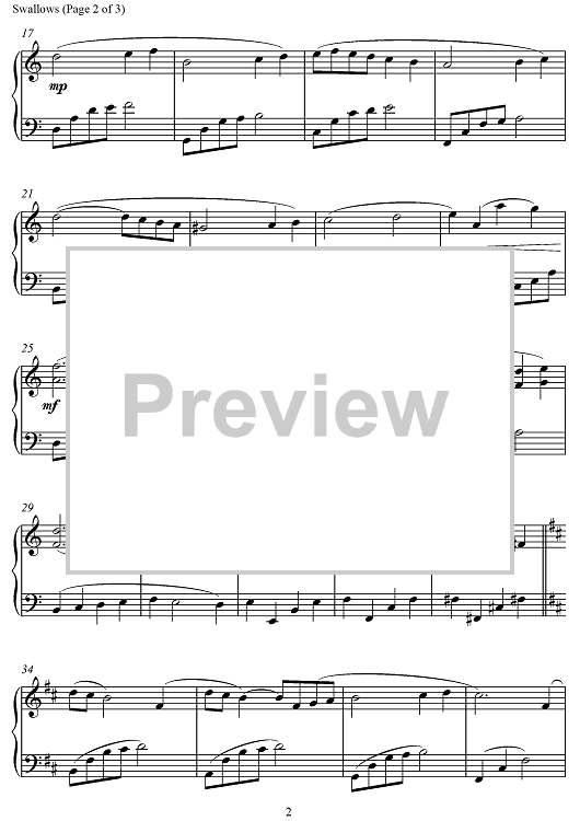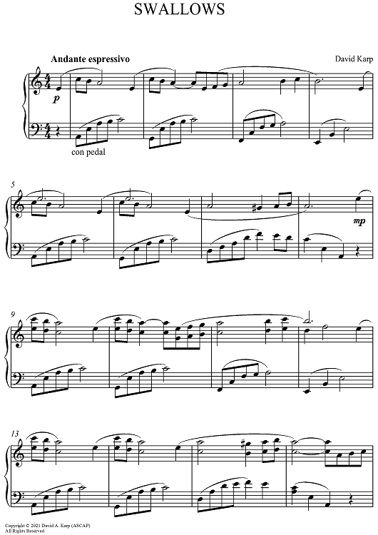 Digital Sheet Music for Swallows by David Karp scored for Piano Solo; id:497185