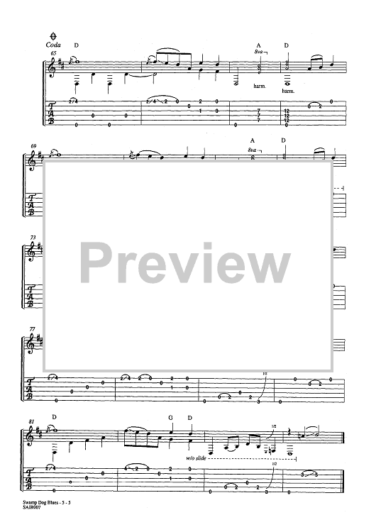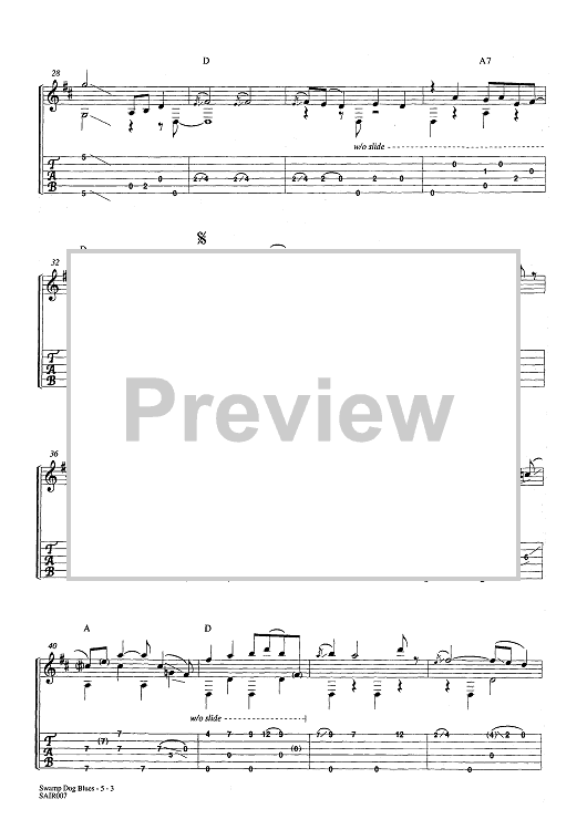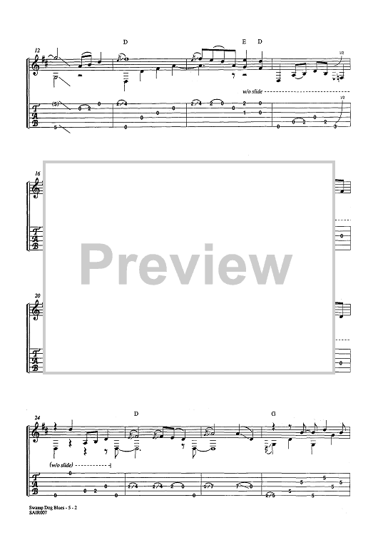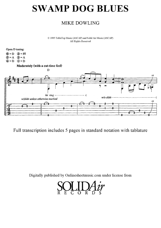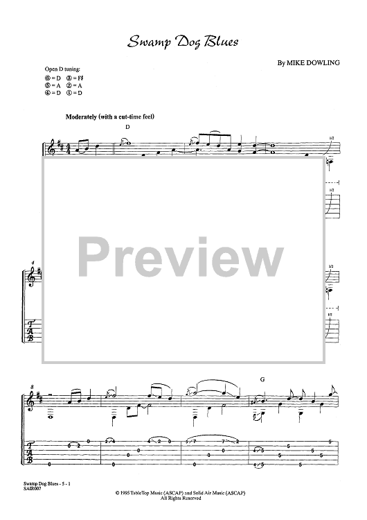 Digital Sheet Music for Swamp Dog Blues (No MP3) by Mike Dowling scored for Guitar Tab; id:451663