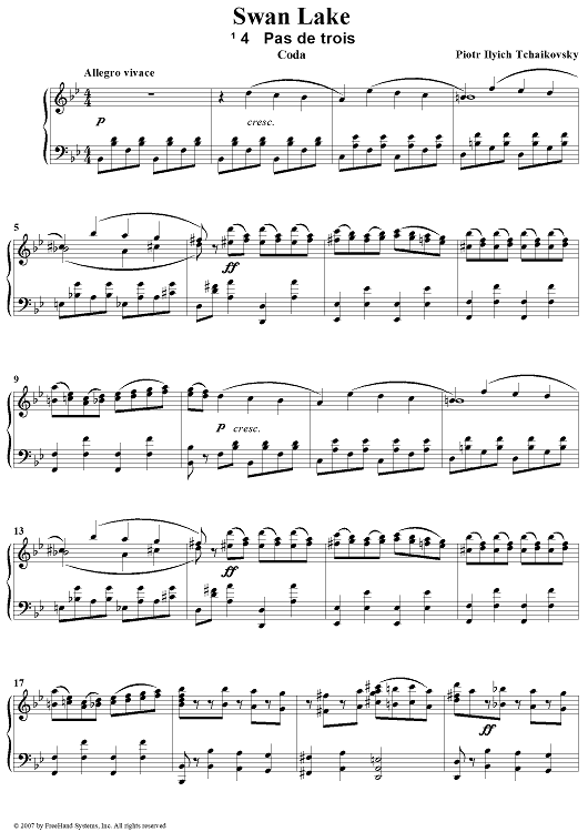 "Swan Lake. Act I. Scene No. 4. Pas de trois. Coda" Sheet Music by Peter Ilyich Tchaikovsky