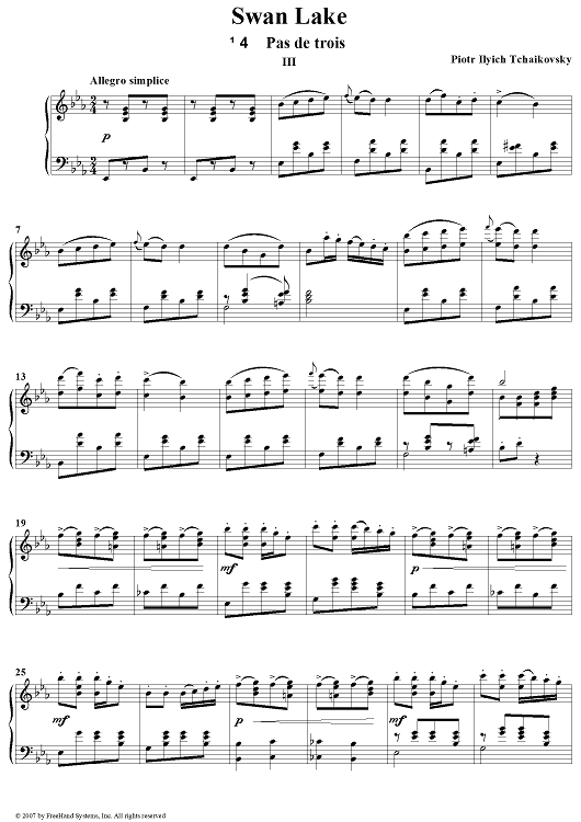 "Swan Lake. Act I. Scene No. 4. Pas de trois III" Sheet Music by Peter Ilyich Tchaikovsky