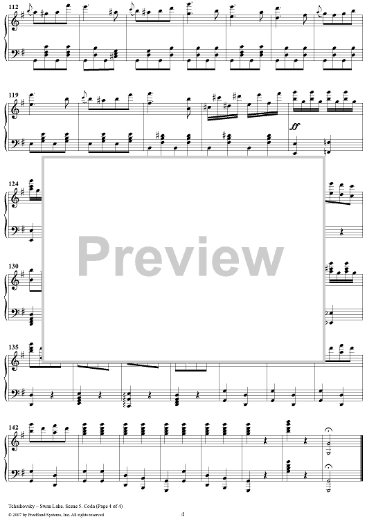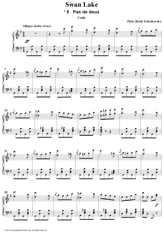 "Swan Lake. Act I. Scene No. 5. Pas de deux. Coda" Sheet Music by Peter Ilyich Tchaikovsky