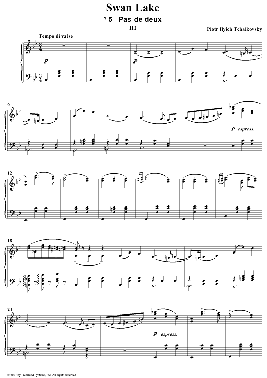 "Swan Lake. Act I. Scene No. 5. Pas de deux III" Sheet Music by Peter Ilyich Tchaikovsky