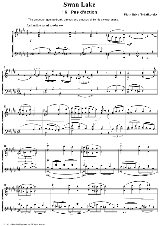 "Swan Lake. Act I. Scene No. 6. Pas d’action" Sheet Music by Peter Ilyich Tchaikovsky