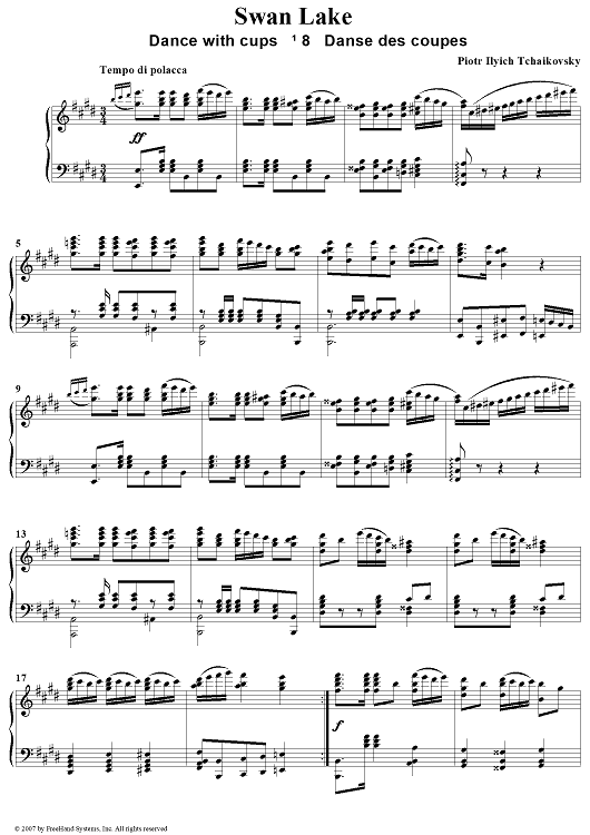 "Swan Lake. Act I. Scene No. 8. Dance with cups" Sheet Music by Peter Ilyich Tchaikovsky