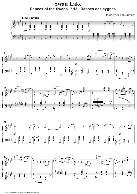 "Swan Lake. Act II. Scene No. 13. Dances of the Swans I" Sheet Music by Peter Ilyich Tchaikovsky
