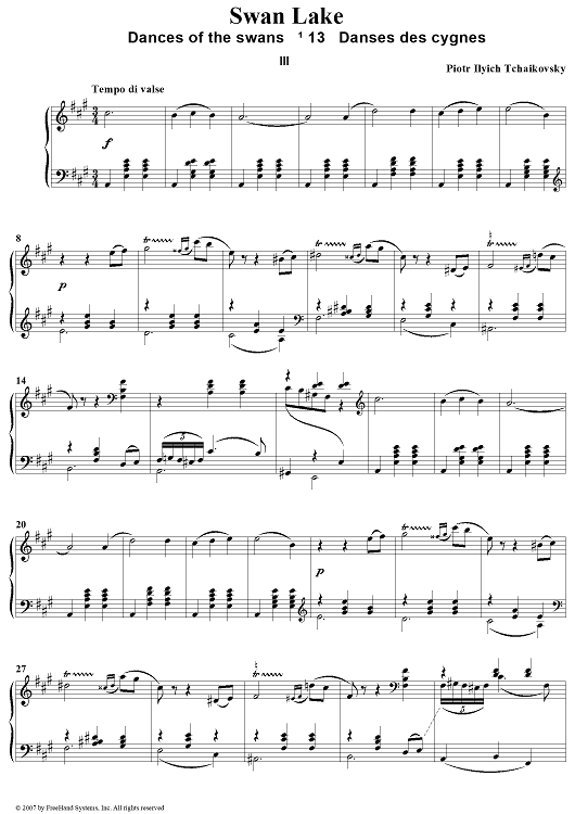 "Swan Lake. Act II. Scene No. 13. Dances of the Swans III" Sheet Music by Peter Ilyich Tchaikovsky