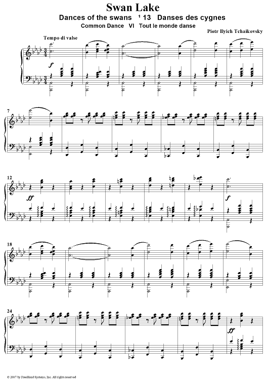 "Swan Lake. Act II. Scene No. 13. Dances of the Swans VI. Common Dance" Sheet Music by Peter Ilyich Tchaikovsky