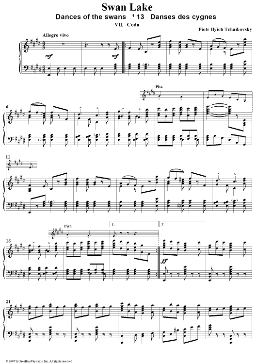 "Swan Lake. Act II. Scene No. 13. Dances of the Swans VII. Coda" Sheet Music by Peter Ilyich Tchaikovsky