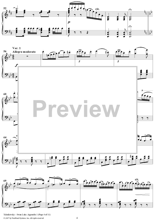 "Swan Lake. Appendix 1. Pas de deux. Introduction" Sheet Music by Peter Ilyich Tchaikovsky