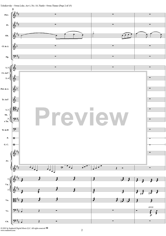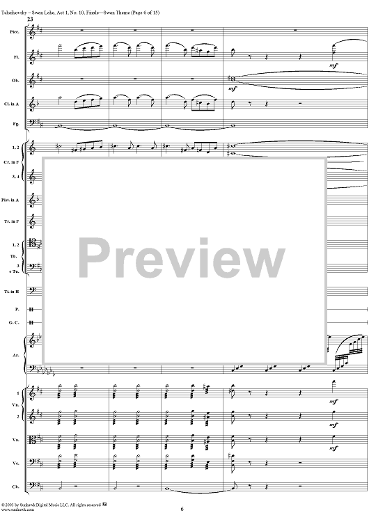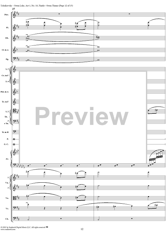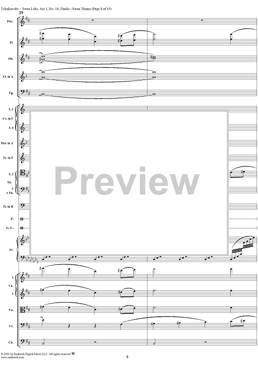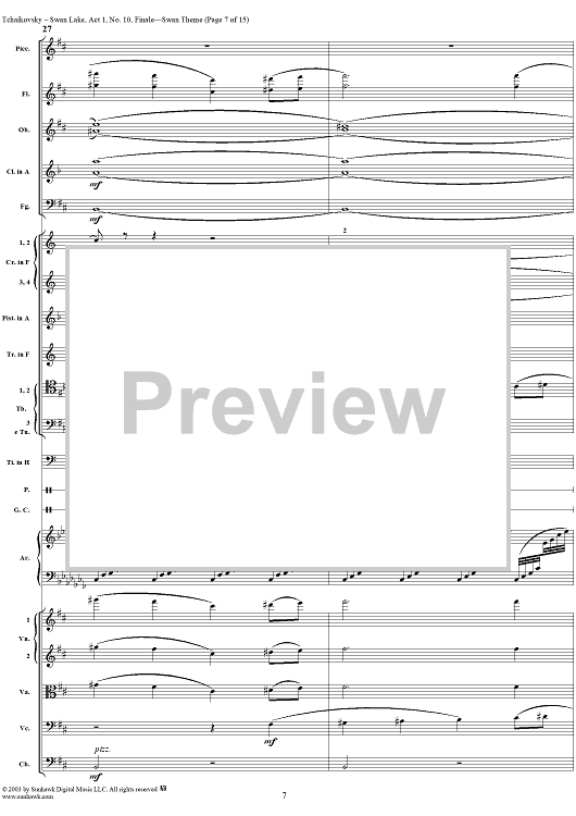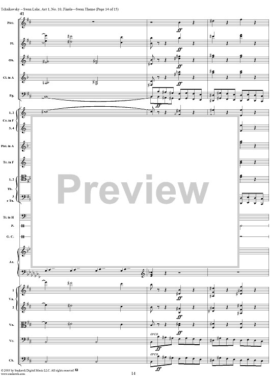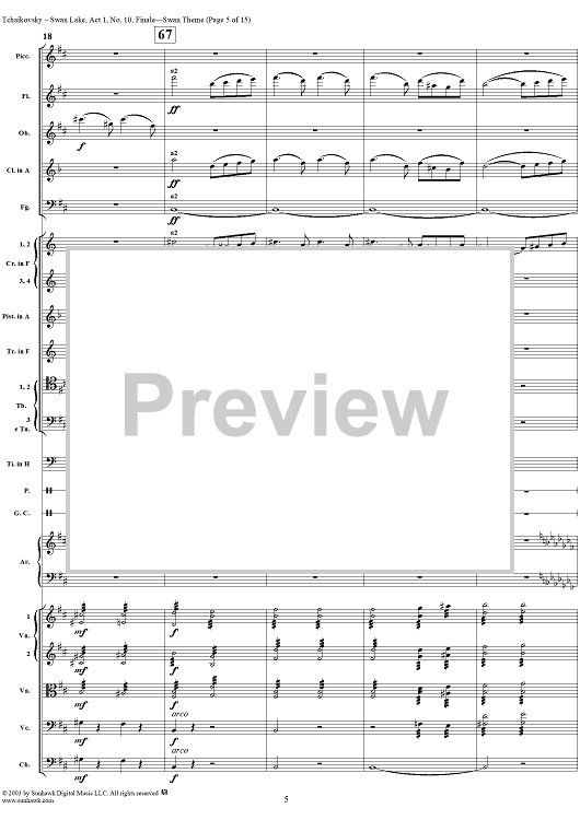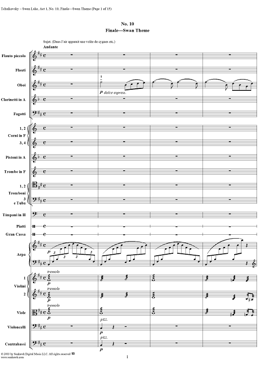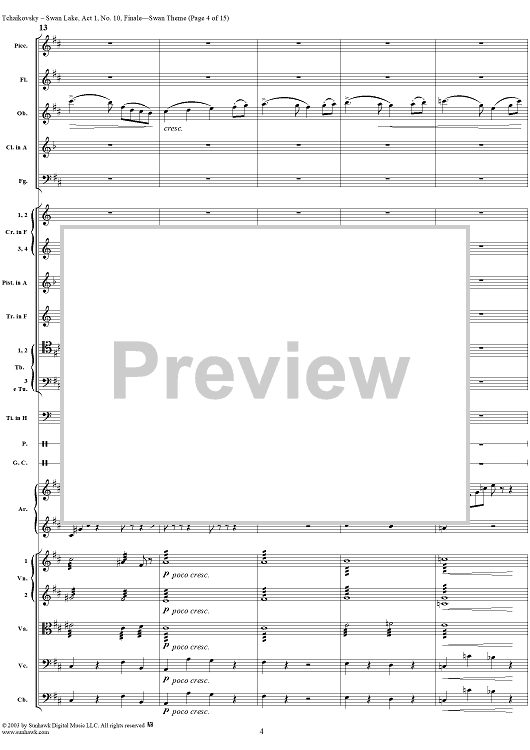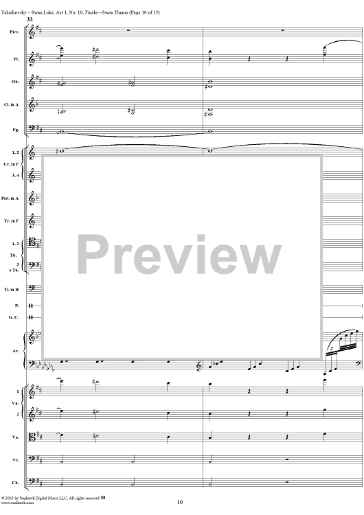 Digital Sheet Music for Swan Lake, No. 10: Finale - Swan Theme - Score by Peter Ilyich Tchaikovsky scored for Orchestra; id:290735