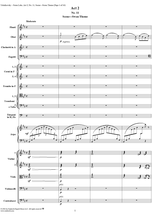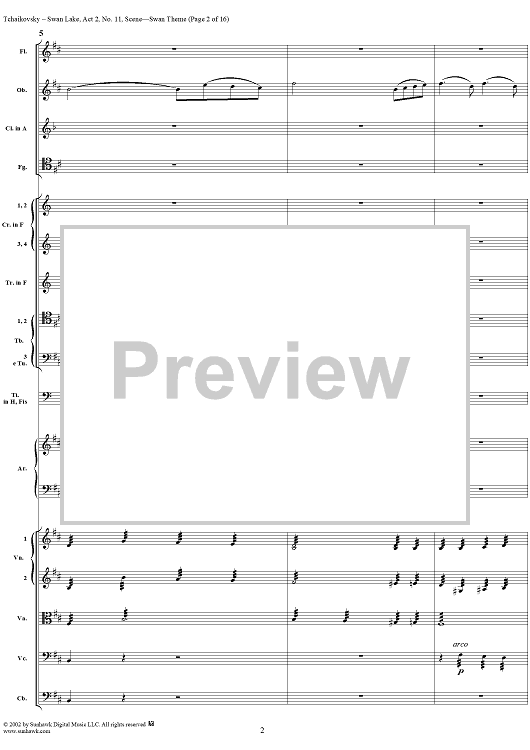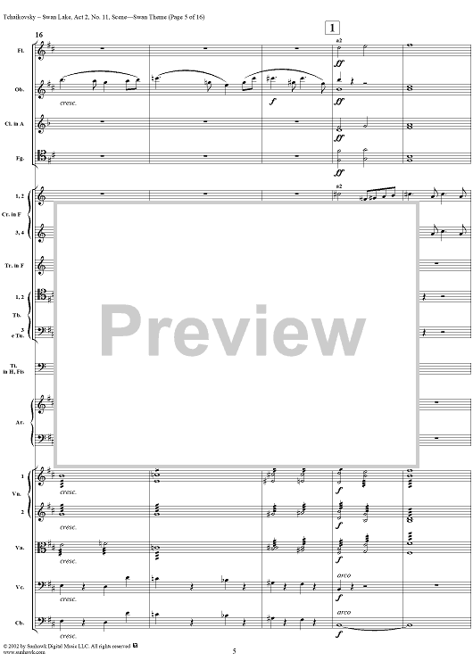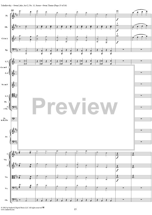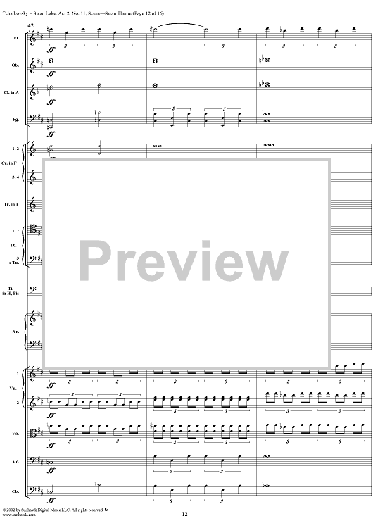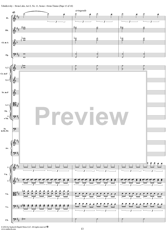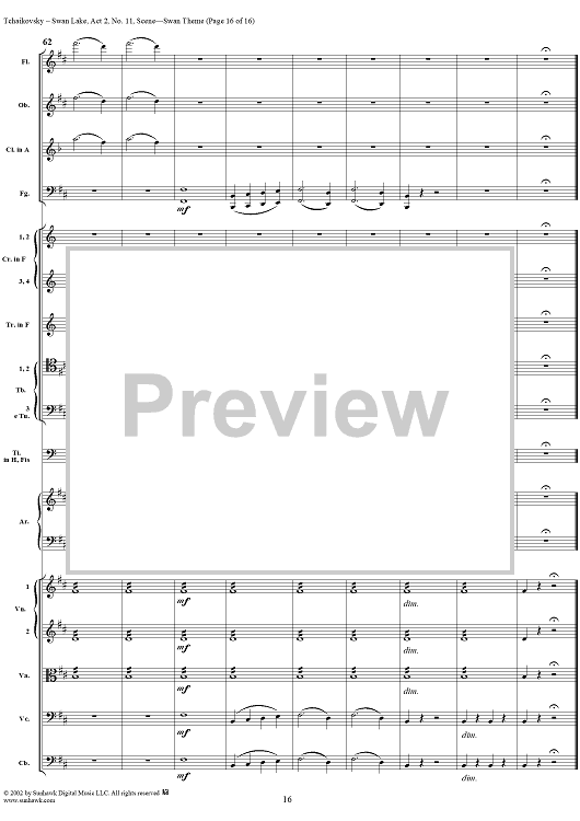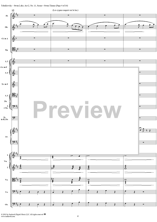 Digital Sheet Music for Swan Lake, No. 11: Swan Theme - Score by Peter Ilyich Tchaikovsky scored for Orchestra; id:170133