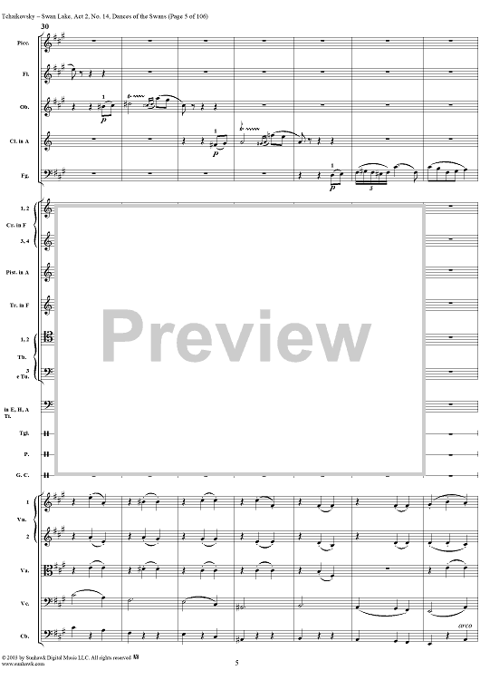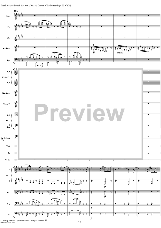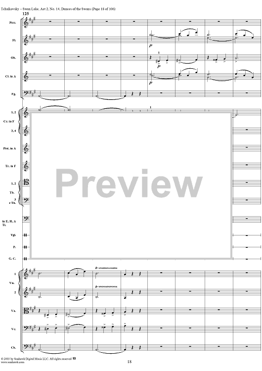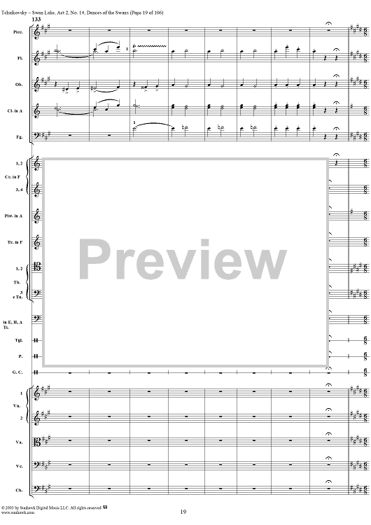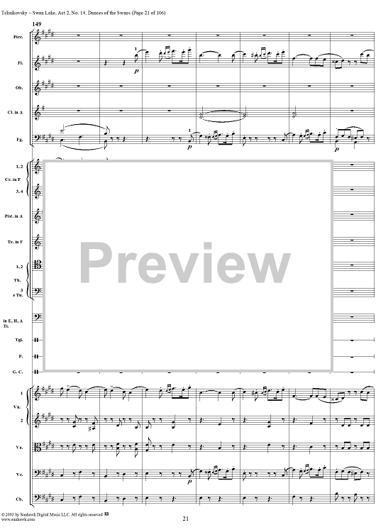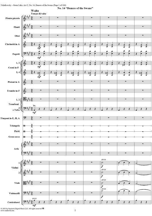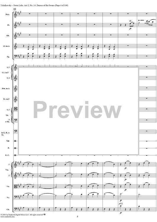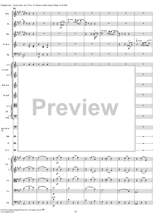 Digital Sheet Music for Swan Lake, No. 14: Dances of the Swans - Score by Peter Ilyich Tchaikovsky scored for Orchestra; id:290738
